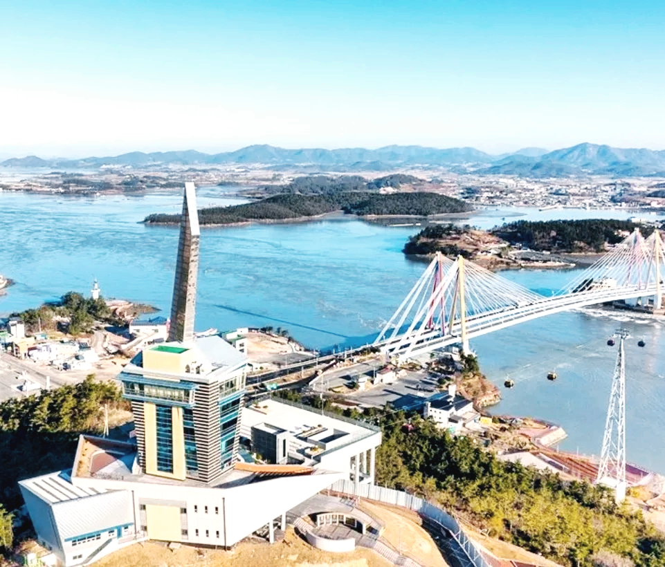 현대적인 디자인과 주변 자연 환경이 어우러져 독특한 랜드마크를 형성하고 있습니다. 고도가 높은 이 타워에서는 진도대교와 신비의 바닷길이 열리는 모습을 포함한 진도의 아름다운 섬들을 감상할 수 있는 완벽한 장소입니다.