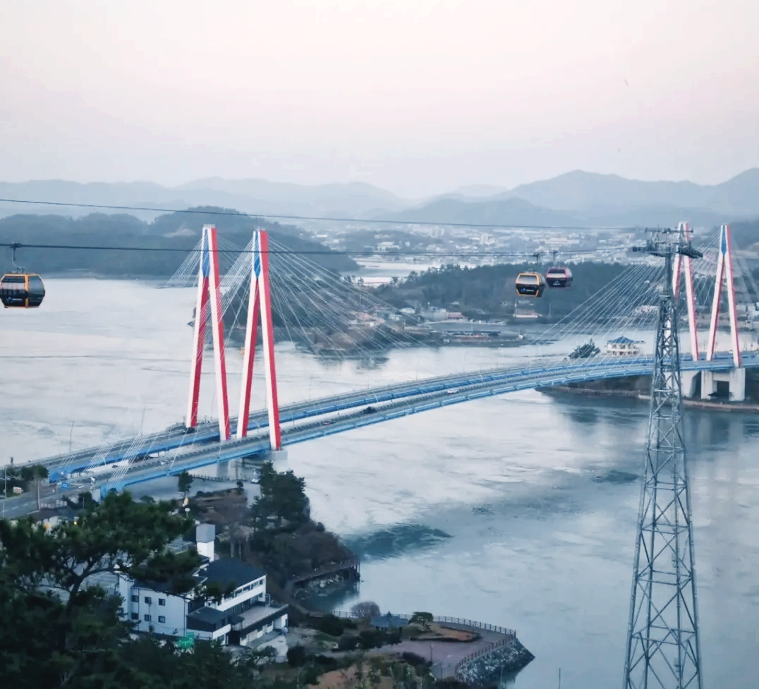 해상 케이블카 여행은 특히 해질 녘에 인기가 높으며, 각 객실에서 명량해협의 아름다운 일몰을 감상할 수 있습니다.